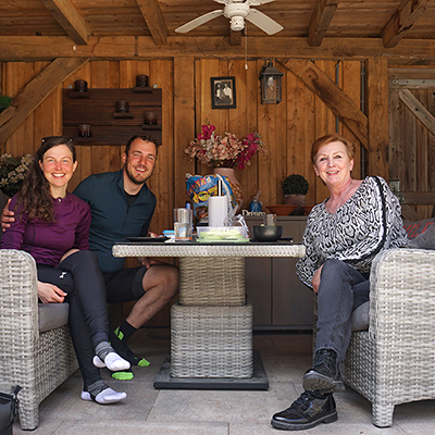 In der Nacht vor unserem nächsten Zwischenstopp gönnen wir uns einen Campingplatz, um vom Luxus einer Dusche Gebrauch machen zu können. In Tilburg statten wir Thea, einer ehemaligen Kollegin von Jevsejs, einen Besuch in ihrer Mittagspause ab. Die Freude des Wiedersehens ist groß. The night before our next stopover, we choose a campsite in order to be able to make use of the luxury of a shower. In Tilburg we visit Thea, a former colleague of Jevsej, during her lunch break. The joy of seeing each other again is immense. La veille de notre prochaine escale, on s'offre un camping pour pouvoir profiter du luxe d'une douche. A Tilburg nous rendons visite à Théa, ancienne collègue de Jevsejs, pendant sa pause déjeuner. La joie de vous revoir est grande.