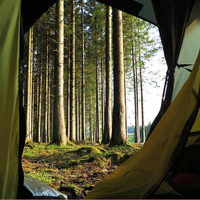 Abends finden wir einen Platz in einem wunderschönen Wald. Die Abendsonne zaubert ein malerisches Licht
