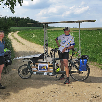Im Laufe des Nachmittags treffen wir immer wieder auf Fahrradfahrer mit Solar-E-Bikes.