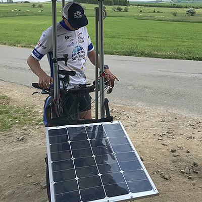 qui participe à une tournée européenne avec son e-bike solaire avec environ 30 autres e-bikers solaires: